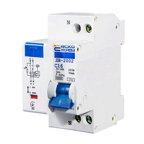 Диференційний автомат АСКО ДВ-2002 16А 30мА