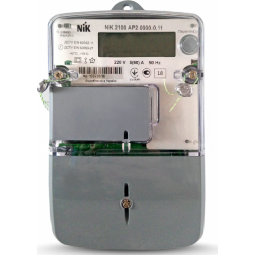 Однофазний лічильник - NIK 2100 АР2, призначений для вимірювання активної енергії в однофазних двопровідних колах змінного струму. Міжповірочний інтервал - 16 років, середній термін експлуатації (до першого капітального ремонту) - 30 років