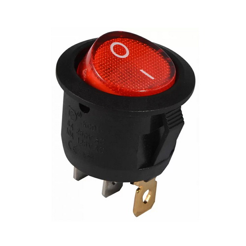 Перемикач 1 клавішний круглий, червоний з підсвіткою KCD1-5-101N R/B