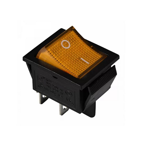 Перемикач 1 клавішний прямокутний, жовтий з підсвіткою KCD2-201N YL/B