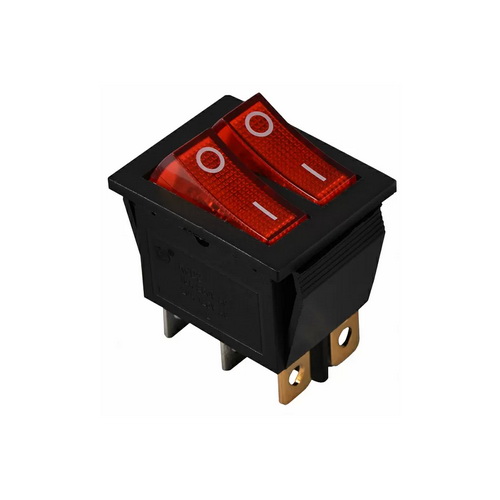 Перемикач 2 клавішний прямокутний,червоний з підсвіткою KCD2-2101N R/B