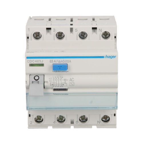 Пристрій захисного відключення Hager 4P 63A 30мA тип AС