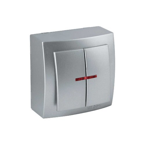 Вимикач Nilson Themis срібло 2кл накладний з підсвіткою