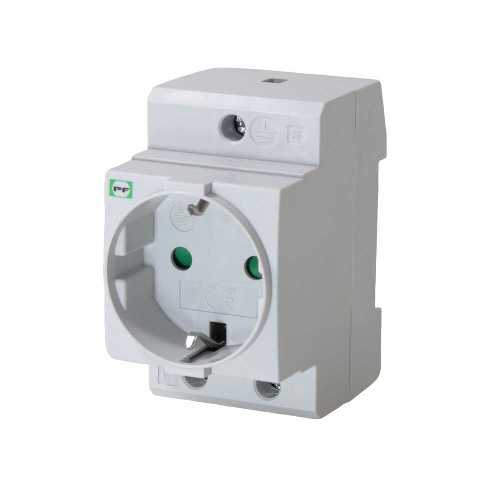 Розетка на DIN-рейку призначена для установки в розподільчий щит і служить для підключення переносного світильника або електричного інструменту малої потужності під час профілактичних і ремонтних робіт в електричній збірці за місцем установки.