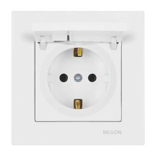 Розетка Nilson Moda біла 1-на з заземленням з кришкою